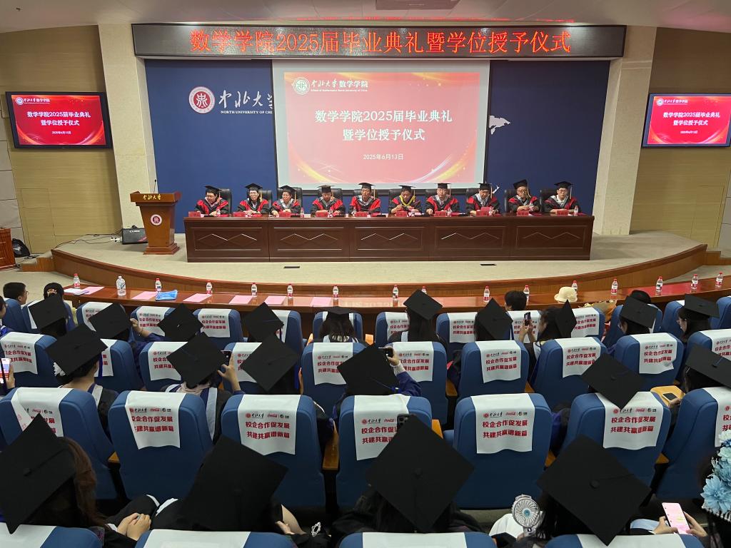 党委书记薛亚奎教授、院长孙桂全教授、党委副书记张鹏娟老师、副院长王鹏教授、副院长吴森林教授、数学与应用数学系主任姚林红老师、概率统计系主任张峰老师、计算科学系张振伟老师、大学数学教学中心主任宋妮老师、数学实验中心主任肖亚峰老师出席本次典礼,同时参会的还有全体辅导员、毕业班级班主任及2025届本硕全体毕业生。本次毕业典礼由院党委副书记张鹏娟主持。